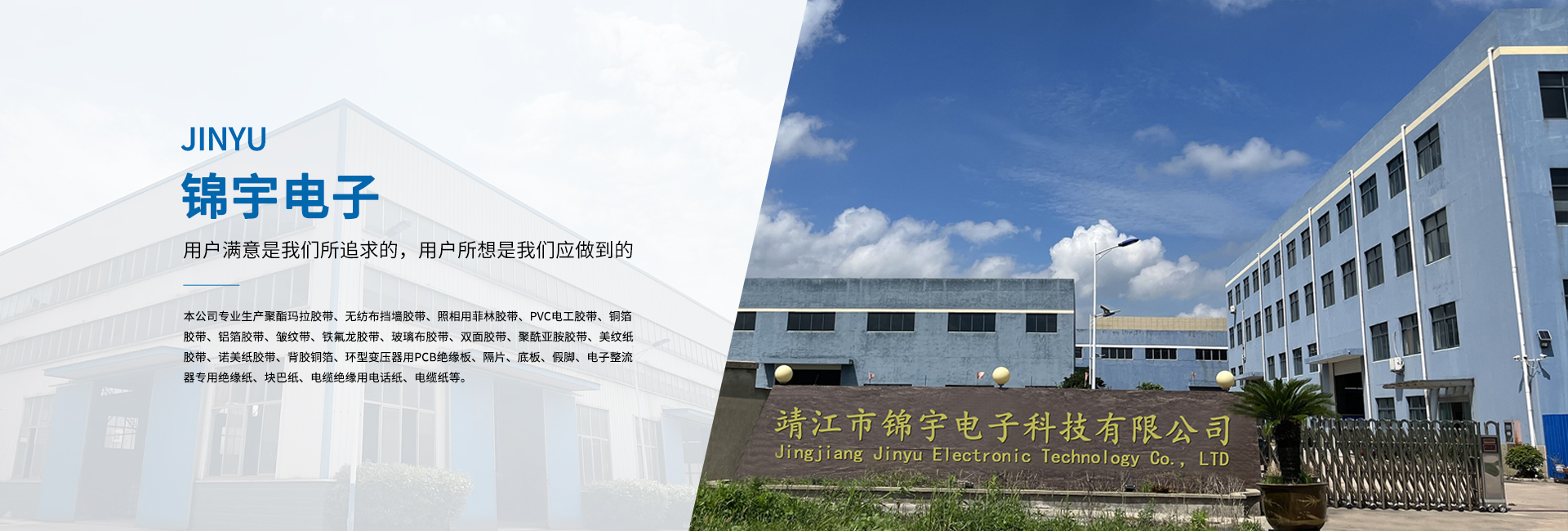 靖江市錦宇電子科技有限公司地處—靖江市。與上海、南京隔江相望,滬寧高速和京滬高速將蘇錫常及京廣連為一體,東依開放港口城市南通,西連新長鐵路,南臨長江萬噸船用碼頭,北接寧通一級高速公路,水陸交通便捷,經(jīng)營環(huán)境優(yōu)良。 本公司專業(yè)生產(chǎn)聚酯瑪拉膠帶、無紡布擋墻膠帶、照相用菲林膠帶、PVC電工膠帶、銅箔膠帶、鋁箔膠帶、皺紋帶、鐵氟龍膠帶、玻璃布膠帶、雙面膠帶、聚酰亞胺膠帶、美紋紙膠帶、諾美紙膠帶、背膠銅箔、環(huán)型變壓器用PCB絕緣板、隔片、底板、假腳、電子整流器專用絕緣紙、塊巴紙、電纜絕緣用電話紙、電纜紙等。 公司依靠先進的科學(xué)管理,精良的生產(chǎn)裝備,合理的工藝設(shè)計,完善的檢測設(shè)備,以著“科技創(chuàng)新、質(zhì)量為本、誠信服務(wù)”的信念。并嚴(yán)格貫徹ISO9001國際質(zhì)量體系的程序和規(guī)格,為廣大用戶提供優(yōu)質(zhì)的產(chǎn)品與滿意的服務(wù)。 多年來,公司本著“用戶滿意是我們所追求的,用戶所想是我們應(yīng)做到的”的經(jīng)營理念;“質(zhì)量保障,價格合理,服務(wù)誠信”的企業(yè)宗旨。熱忱歡迎海內(nèi)外各界人士、朋友前來洽談、合作,攜手共創(chuàng)輝煌的明天。